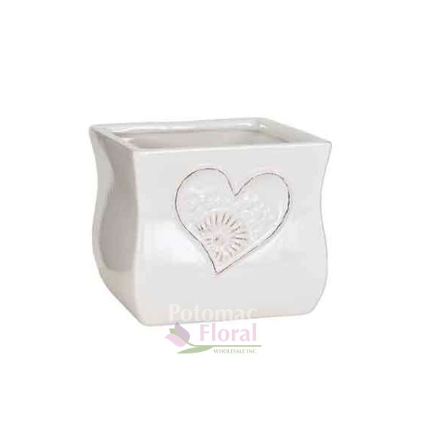 Ceramic 5" White Cube with Heart Design