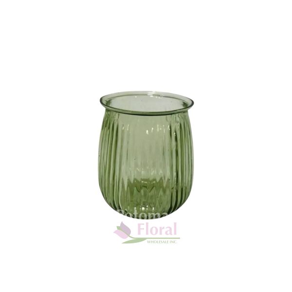 Glass Emerald Pleated 4" x 4" Votive Vase