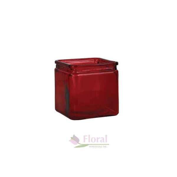 Red 4" Glass Cube with Lip