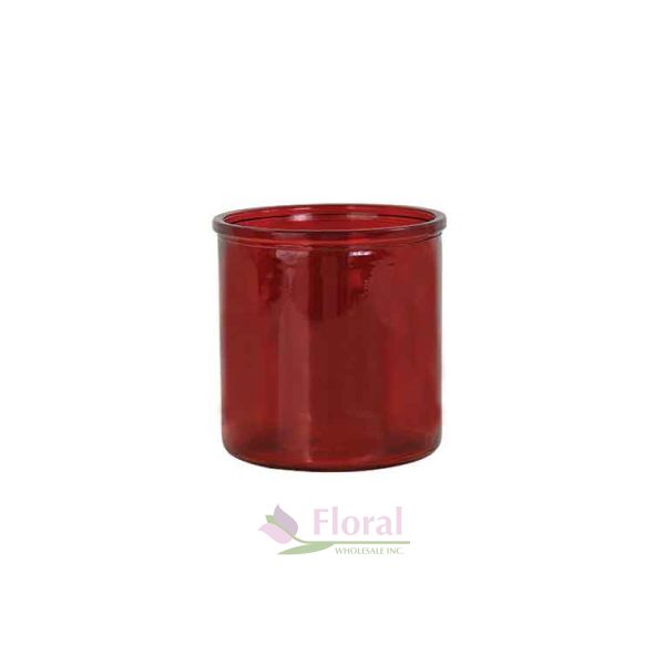 Red Glass Cylinder with Lip 5" Tall x 4-3/4" Opening