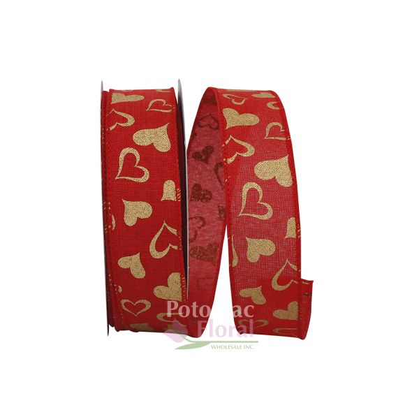 Valentine Ribbon - Heart Linen Wired Gold #9 x 25 Yards