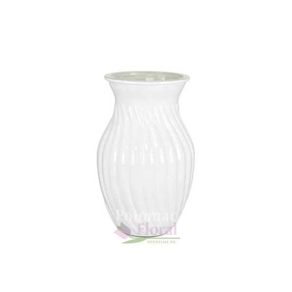 White Glass 8" x 4" Rose Vase Swirl